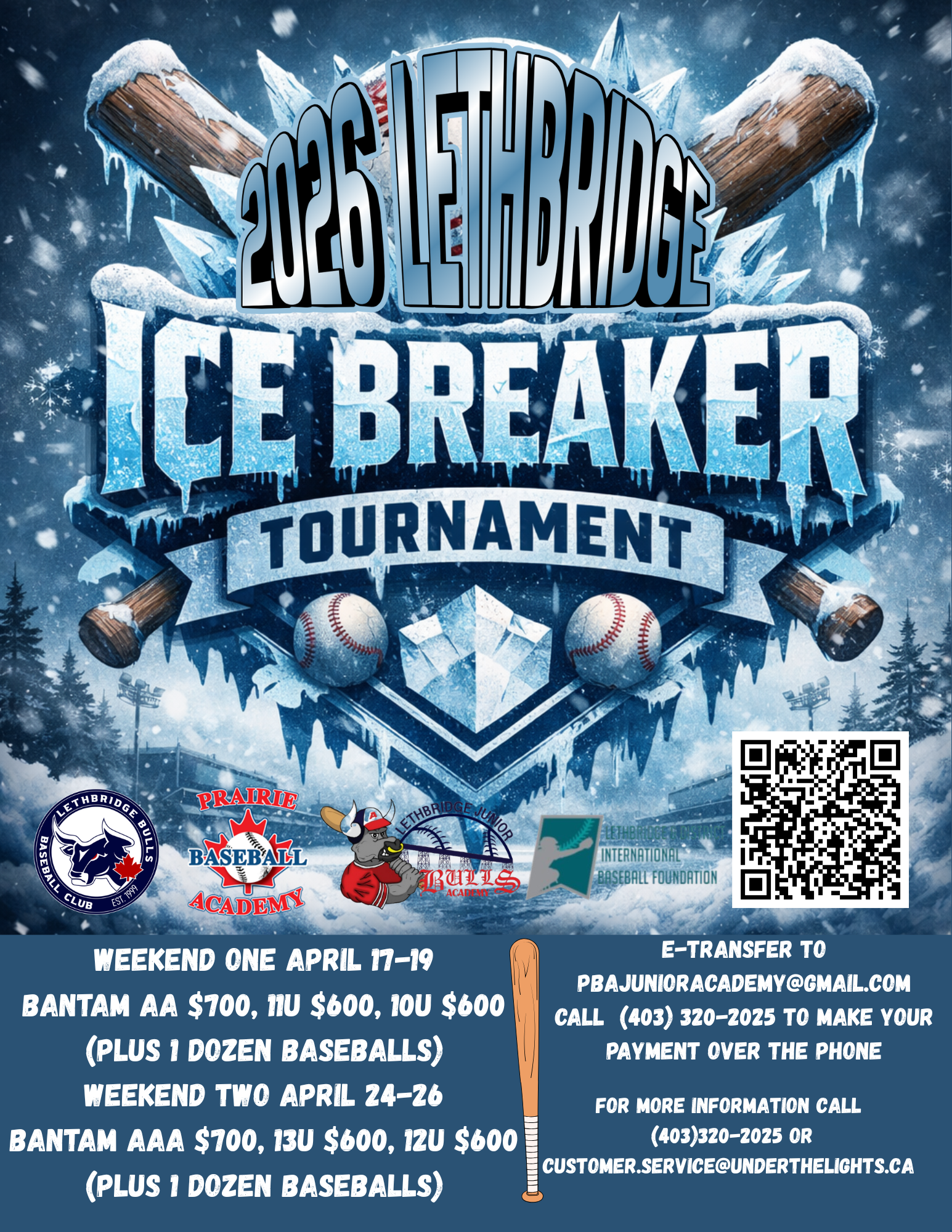 KICK OFF THE 2026 YOUTH BASEBALL SEASON BY JOINING US FOR THE 12TH ANNUAL ICE BREAKER TOURNAMENT! ALL TEAMS ENTERED ARE GUARANTEED 4 GAMES (WEATHER PERMITTING)